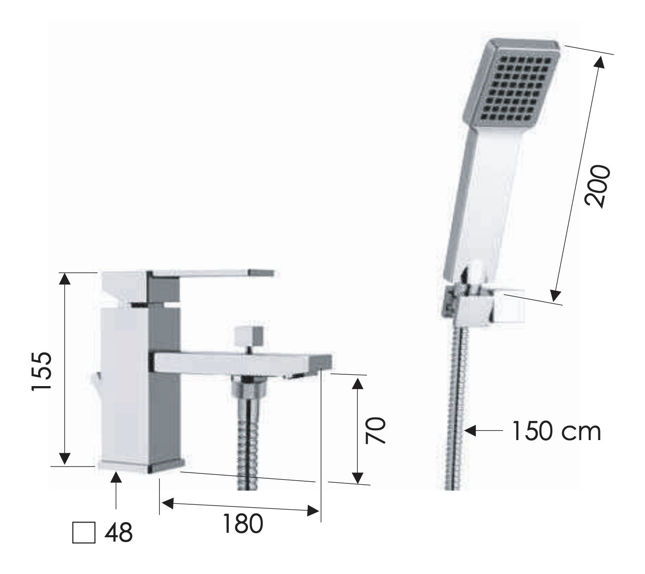 Remer Qubika Смеситель на борт ванны , излив 18 см, ручной душ, держатель, шланг 150 см, цвет: cromo Q03 и другие сантехнические изделия бренда характеризует надежность, высокое качество и продолжительный срок службы. Изделие в стилистике арт-деко впечатляюще будет смотреться в различных цветовых решениях помещения.
