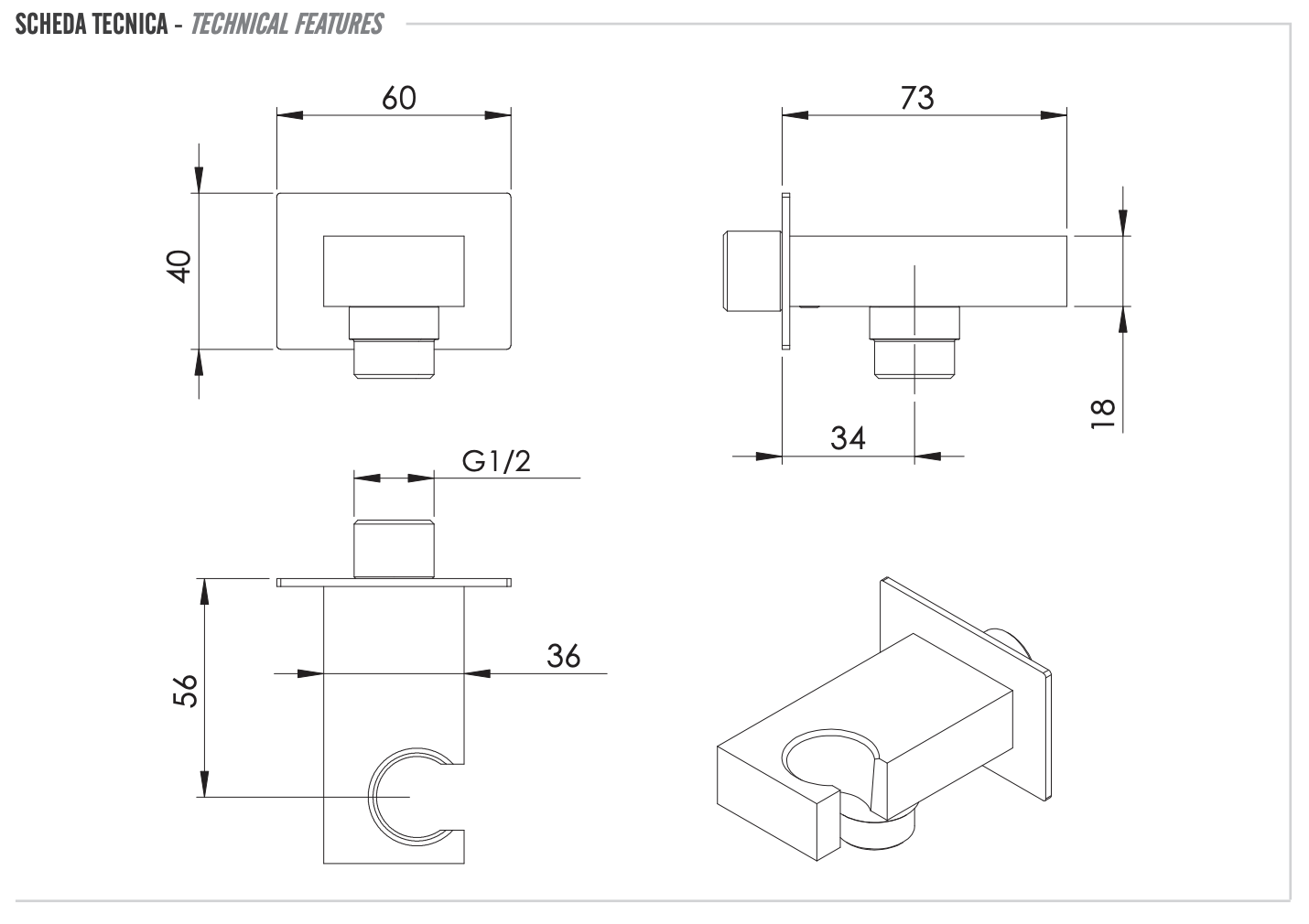 Remer Шланговое подключение с держателем душа, цвет: nero opaco 337WNO и другие сантехнические изделия бренда характеризует надежность, высокое качество и продолжительный срок службы. Изделие в стилистике минимализм впечатляюще будет смотреться в различных цветовых решениях помещения.