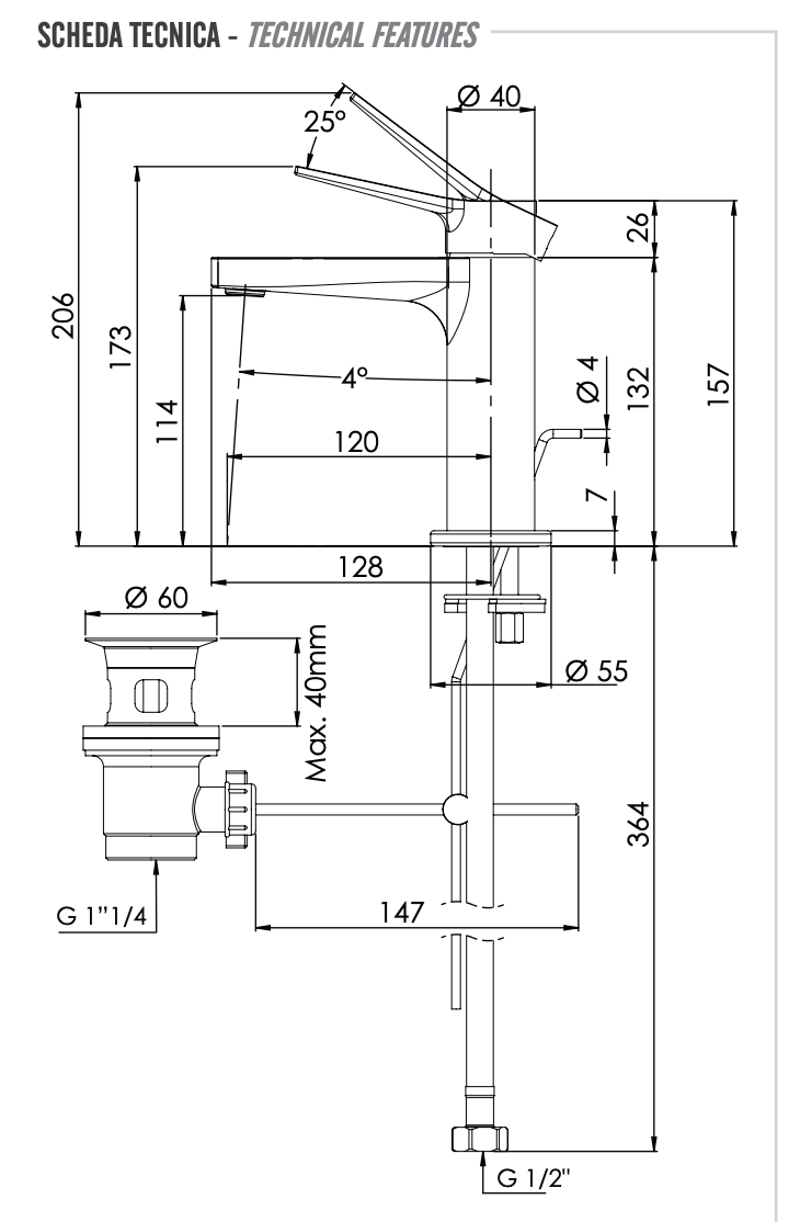 Remer Slash & Dot Смеситель для раковины, с донным клапаном, высота излива 11,4 см, цвет: cromo SL10 и другие сантехнические изделия бренда характеризует надежность, высокое качество и продолжительный срок службы. Изделие в стилистике лофт впечатляюще будет смотреться в различных цветовых решениях помещения.