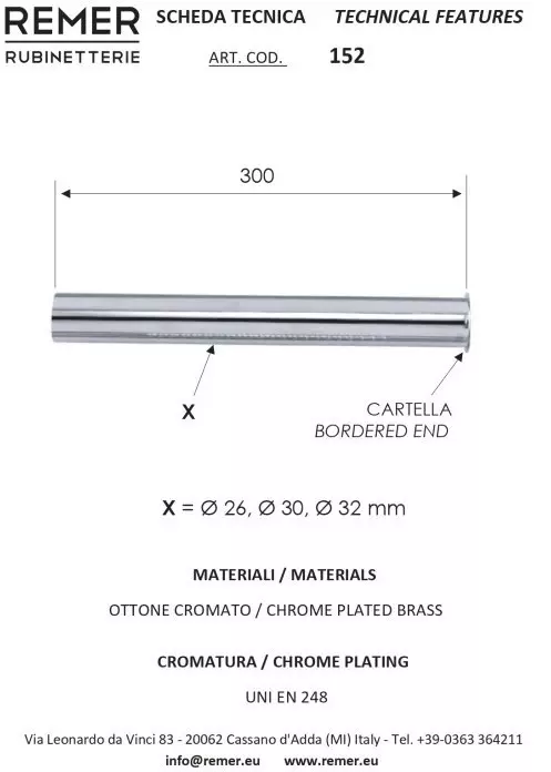 Remer Трубка c фланцем, диаметр 3,2 см, длина 30 см, цвет: cromo 1523230 и другие сантехнические изделия бренда характеризует надежность, высокое качество и продолжительный срок службы. Изделие в стилистике минимализм впечатляюще будет смотреться в различных цветовых решениях помещения.