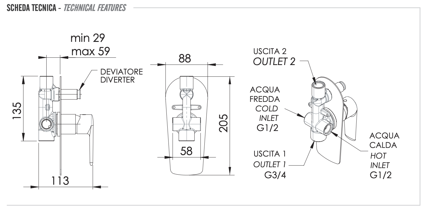 Remer Vanity Смеситель для ванны встраиваемый на 2 потребителя, с встраиваемой частью, цвет: cromo V09 и другие сантехнические изделия бренда характеризует надежность, высокое качество и продолжительный срок службы. Изделие в стилистике арт-деко впечатляюще будет смотреться в различных цветовых решениях помещения.