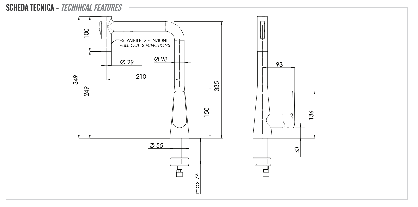 Закажите Remer Vanity Смеситель для кухни с выдвижным изливом на 2 режима струи, цвет: cromo V81M от производителя Remer, коллекция Vanity в салоне европейской сантехники Дизайн Сантехники с быстрой доставкой по Москве. Представлены подробные характеристики и фотографии, которые позволят сделать правильный выбор и заказать товар.