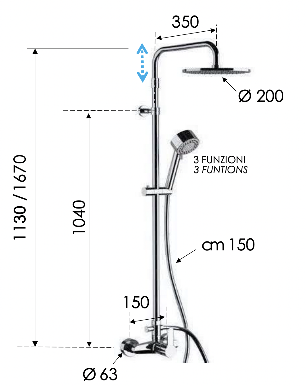 Remer Winner Душевая стойка: смеситель, верхний душ 20 см, лейка, штанга 167 см, шланг, цвет: cromo W37AMD20 и другие сантехнические изделия бренда характеризует надежность, высокое качество и продолжительный срок службы. Изделие в стилистике минимализм впечатляюще будет смотреться в различных цветовых решениях помещения.