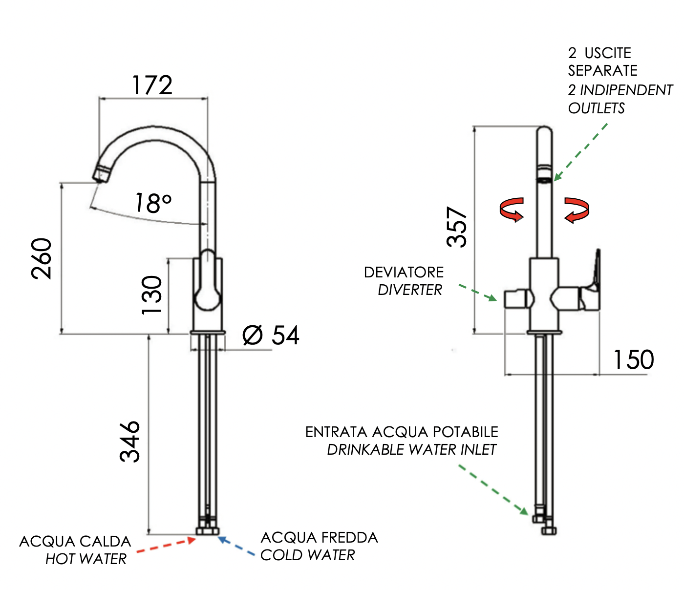 Remer Winner Смеситель для кухни, с независимым каналом для питьевой воды, цвет: cromo W79DW и другие сантехнические изделия бренда характеризует надежность, высокое качество и продолжительный срок службы. Изделие в стилистике неоклассика впечатляюще будет смотреться в различных цветовых решениях помещения.