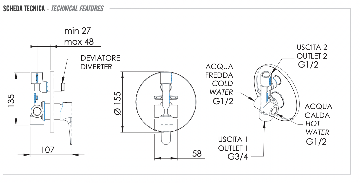 Remer Winner Смеситель для ванны встраиваемый на 2 потребителя, с встраиваемой частью, цвет: cromo W09 и другие сантехнические изделия бренда характеризует надежность, высокое качество и продолжительный срок службы. Изделие в стилистике арт-деко впечатляюще будет смотреться в различных цветовых решениях помещения.