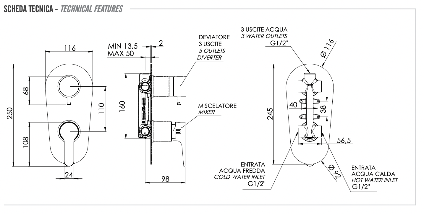 Remer Winner Смеситель для ванны встраиваемый на 3 потребителя, с встраиваемой частью, цвет: cromo W93 и другие сантехнические изделия бренда характеризует надежность, высокое качество и продолжительный срок службы. Изделие в стилистике арт-деко впечатляюще будет смотреться в различных цветовых решениях помещения.