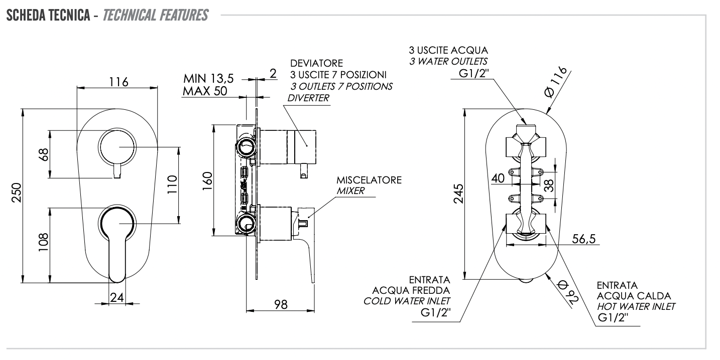 Remer Winner Смеситель для ванны встраиваемый, 3 потребителя, с скрытой частью, цвет: cromo W937 и другие сантехнические изделия бренда характеризует надежность, высокое качество и продолжительный срок службы. Изделие в стилистике арт-деко впечатляюще будет смотреться в различных цветовых решениях помещения.