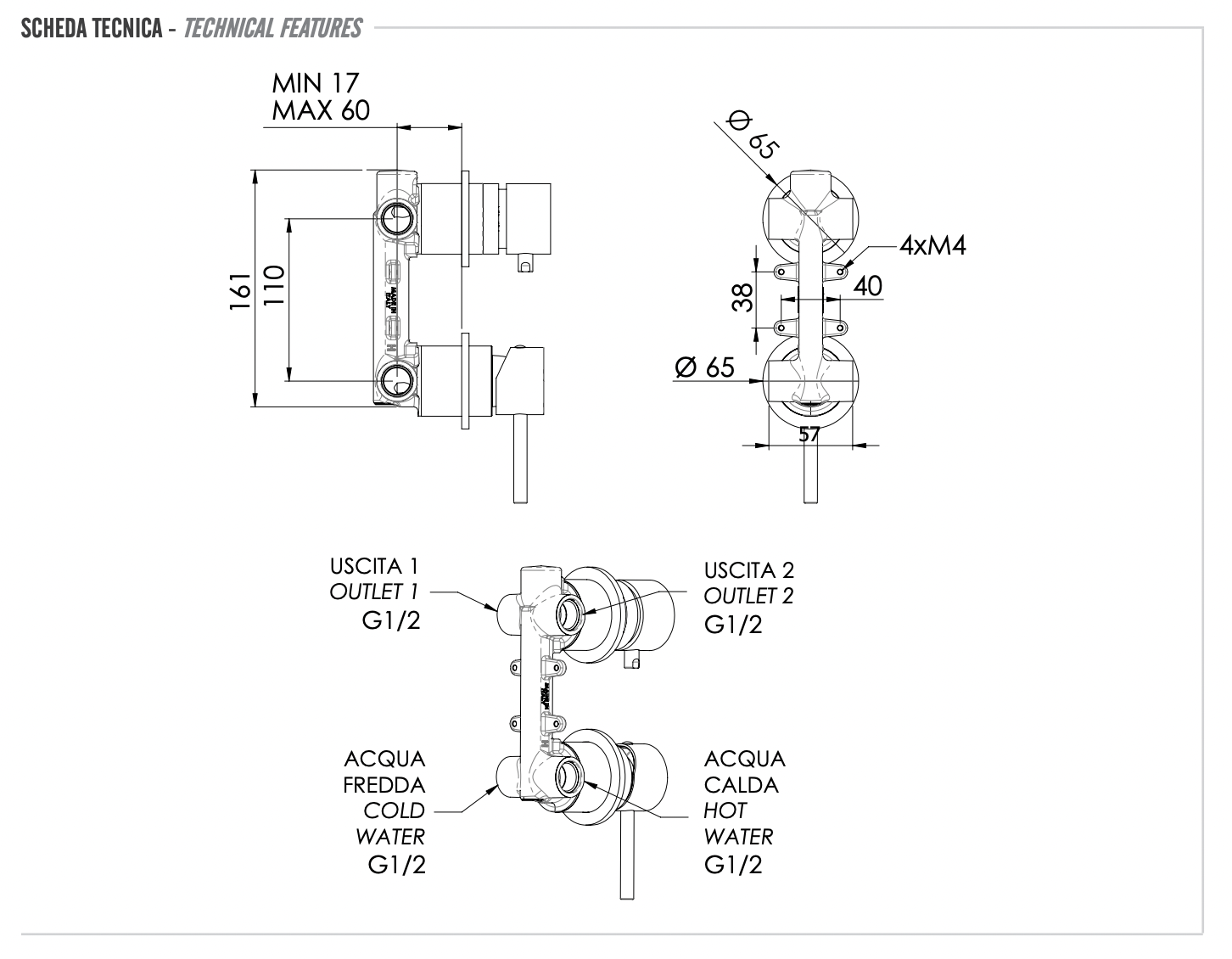 Remer X Style Inox Смеситель для ванны встраиваемый, 2 потребителя, цвет: inox spazzolato SSX92P и другие сантехнические изделия бренда характеризует надежность, высокое качество и продолжительный срок службы. Изделие в стилистике арт-деко впечатляюще будет смотреться в различных цветовых решениях помещения.