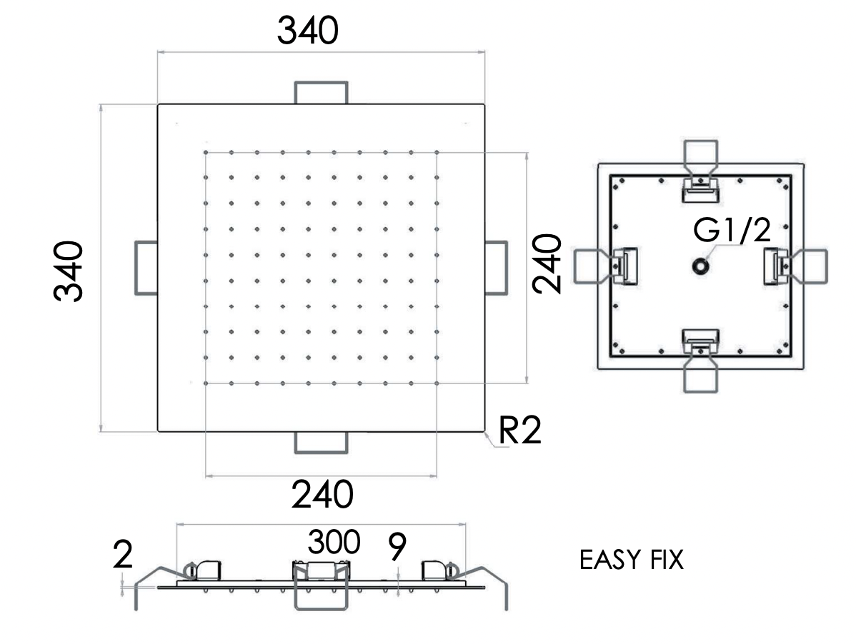 Remer X Style Inox Верхний душ встраиваемый в потолок 34x34 см, 1 режим, цвет: inox spazzolato SS357EFS34 и другие сантехнические изделия бренда характеризует надежность, высокое качество и продолжительный срок службы. Изделие в стилистике минимализм впечатляюще будет смотреться в различных цветовых решениях помещения.