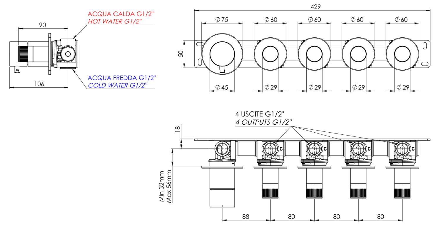 Remer X Style Смеситель для ванны встраиваемый, 4 потребителя, с скрытой частью, цвет: cromo N98D4P и другие сантехнические изделия бренда характеризует надежность, высокое качество и продолжительный срок службы. Изделие в стилистике арт-деко впечатляюще будет смотреться в различных цветовых решениях помещения.