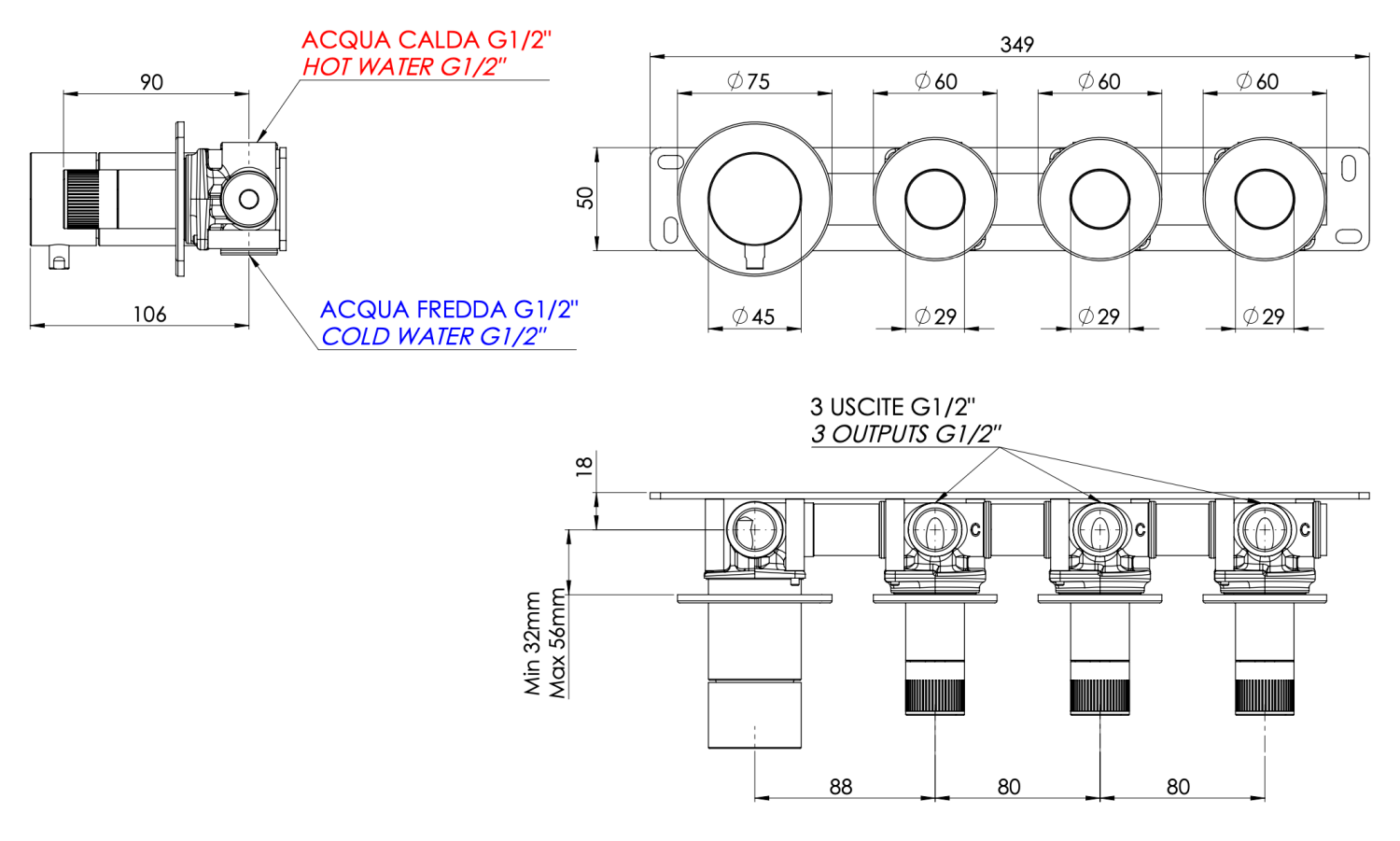 Remer X Style Смеситель для ванны встраиваемый, 3 потребителя, с скрытой частью, цвет: visual inox N98D3PXV и другие сантехнические изделия бренда характеризует надежность, высокое качество и продолжительный срок службы. Изделие в стилистике арт-деко впечатляюще будет смотреться в различных цветовых решениях помещения.
