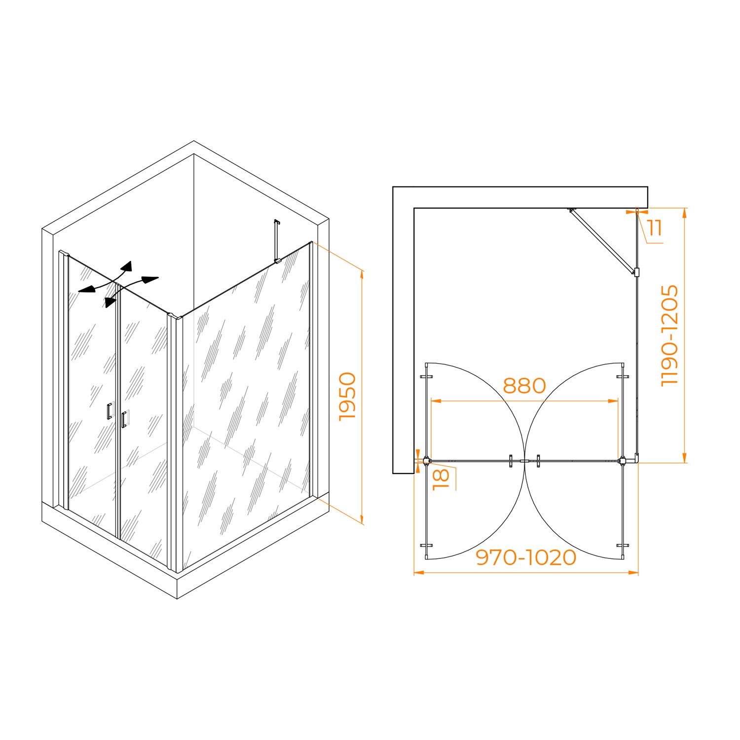 RGW Passage Душевой уголок 100х120х195h см, универсальный, Easy Clean, цвет: хром глянцевый 060814402-11 и другие сантехнические изделия бренда характеризует надежность, высокое качество и продолжительный срок службы. Изделие в стилистике минимализм впечатляюще будет смотреться в различных цветовых решениях помещения.