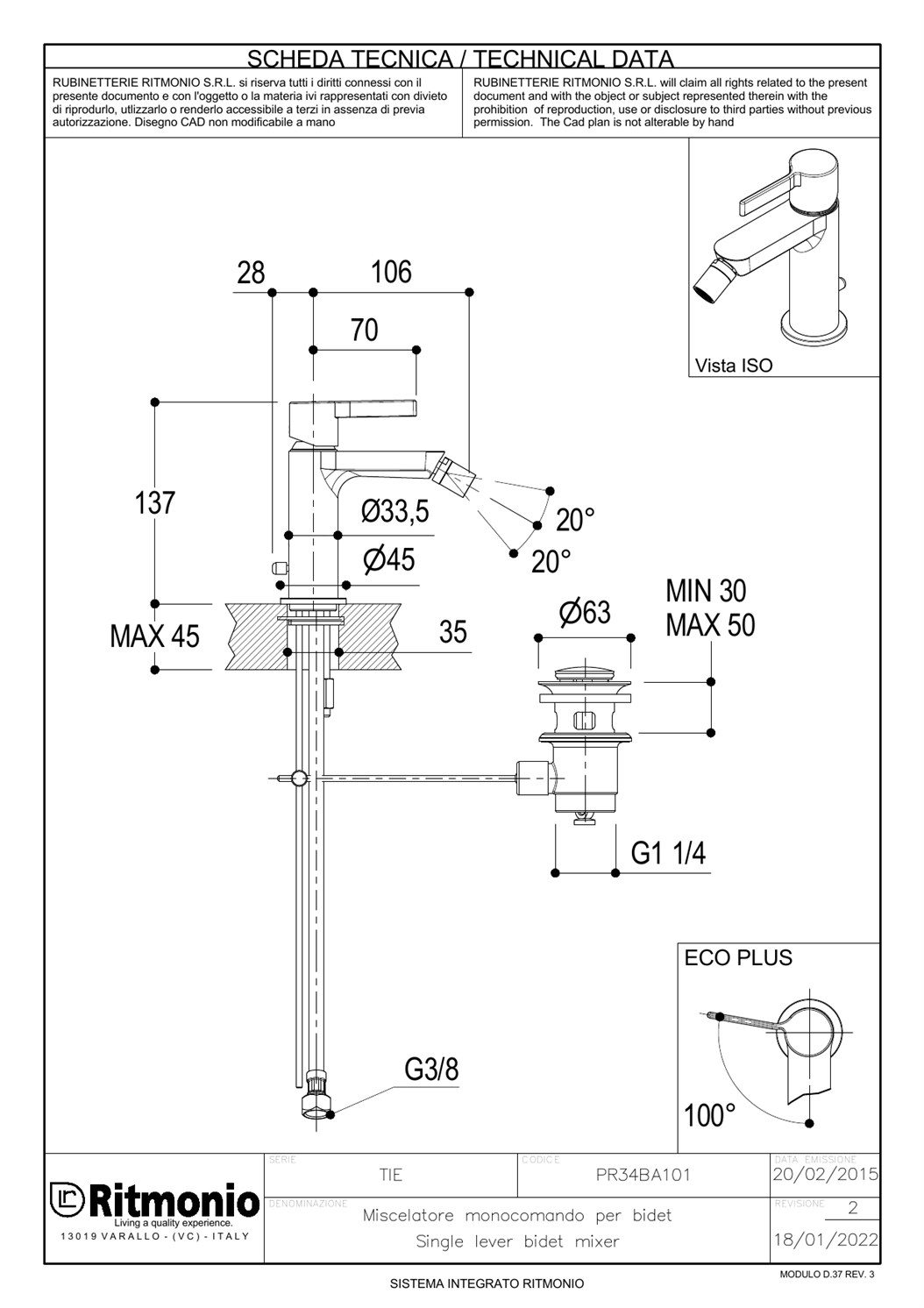 Ritmonio Tie Смеситель для биде, без донного клапана, длина излива 10,6 см, цвет: chrome PR34BA201CRL