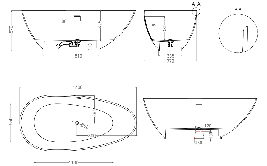 Salini Paola Ванна из S-Sense отдельностоящая 160x77 см, цвет: RAL полностью глянцевый 101511GF и другие сантехнические изделия бренда характеризует надежность, высокое качество и продолжительный срок службы. Изделие в стилистике минимализм впечатляюще будет смотреться в различных цветовых решениях помещения.