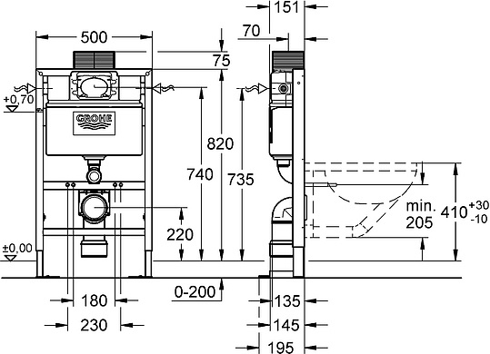 Grohe Rapid SL Инсталляция для унитаза 82h см с усиленными нижними опорами 38587000 и другие сантехнические изделия бренда характеризует надежность, высокое качество и продолжительный срок службы. Изделие в стилистике минимализм впечатляюще будет смотреться в различных цветовых решениях помещения.
