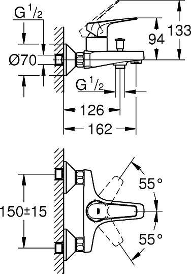 Grohe BauFlow Смеситель для ванны накладной, цвет: хром 23601000 и другие сантехнические изделия бренда характеризует надежность, высокое качество и продолжительный срок службы. Изделие в стилистике минимализм впечатляюще будет смотреться в различных цветовых решениях помещения.