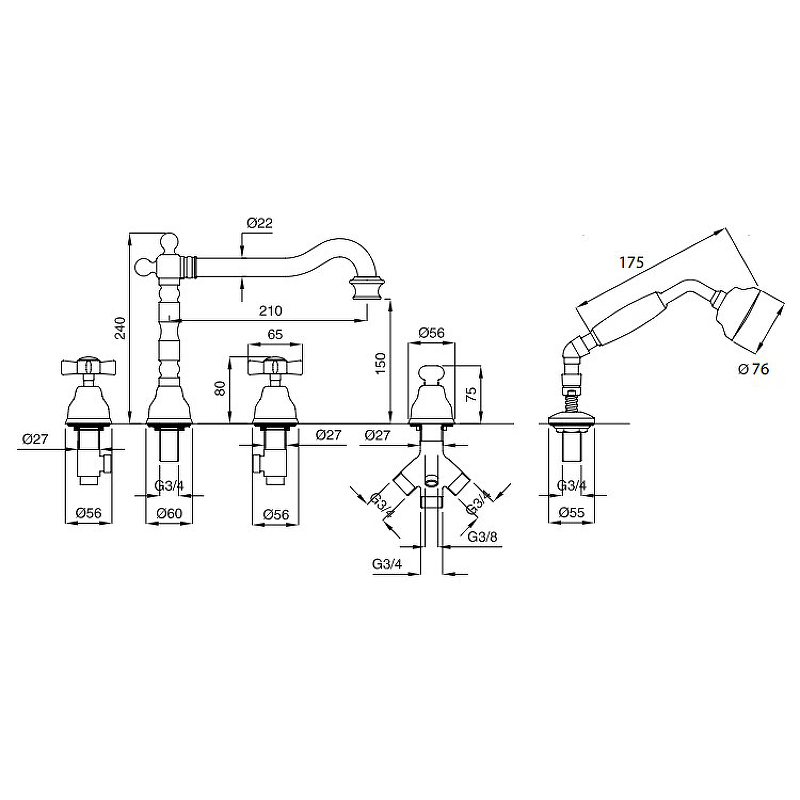 Смеситель Migliore Princeton на борт ванны 19385 и другие сантехнические изделия бренда характеризует надежность, высокое качество и продолжительный срок службы. Изделие в стилистике английская классика впечатляюще будет смотреться в различных цветовых решениях помещения.
