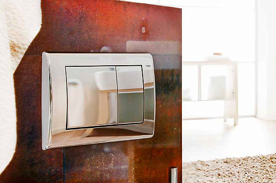 Tece Planus Кнопка смыва для унитаза, металл, цвет: хром глянцевый 9240321 и другие сантехнические изделия бренда характеризует надежность, высокое качество и продолжительный срок службы. Изделие в стилистике минимализм впечатляюще будет смотреться в различных цветовых решениях помещения.