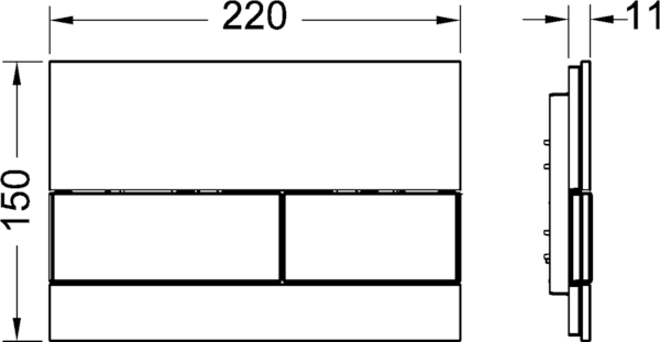 Панель смыва для смывных бачков Tece, фронтальная или верхняя установка. Плоская стеклянная панель смыва с двумя установленными на пружинах клавишами привода кулисного типа. Подходит для монтажа на уровне стены вместе с монтажной рамкой унитаза для монтажа на уровне стены (например, арт. 9240649). Совместима с контейнером для гигиенических таблеток.