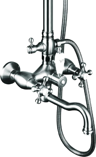 Timo Nelson Душевая стойка с верхним душем, цвет: хром глянцевый SX-1290/00 и другие сантехнические изделия бренда характеризует надежность, высокое качество и продолжительный срок службы. Изделие в стилистике арт-деко впечатляюще будет смотреться в различных цветовых решениях помещения.