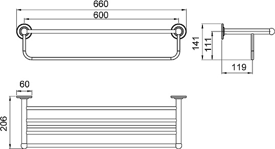 Timo Nelson Полка для полотенец, цвет: хром 150058/00 и другие сантехнические изделия бренда характеризует надежность, высокое качество и продолжительный срок службы. Изделие в стилистике арт-деко впечатляюще будет смотреться в различных цветовых решениях помещения.