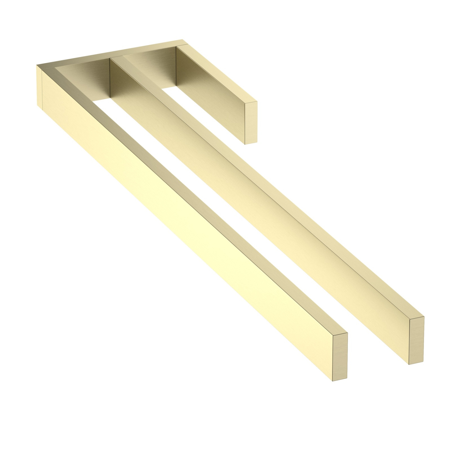 Timo Petruma Полотенцедержатель двойной подвесной, латунь цвет: золото матовое 15252/17 и другие сантехнические изделия бренда характеризует надежность, высокое качество и продолжительный срок службы. Изделие в стилистике минимализм впечатляюще будет смотреться в различных цветовых решениях помещения.