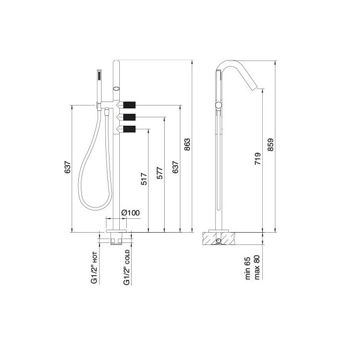 Treemme 22MM Смеситель для ванны напольный, цвет: нержавеющая сталь 6084IS и другие сантехнические изделия бренда характеризует надежность, высокое качество и продолжительный срок службы. Изделие в стилистике лофт впечатляюще будет смотреться в различных цветовых решениях помещения.