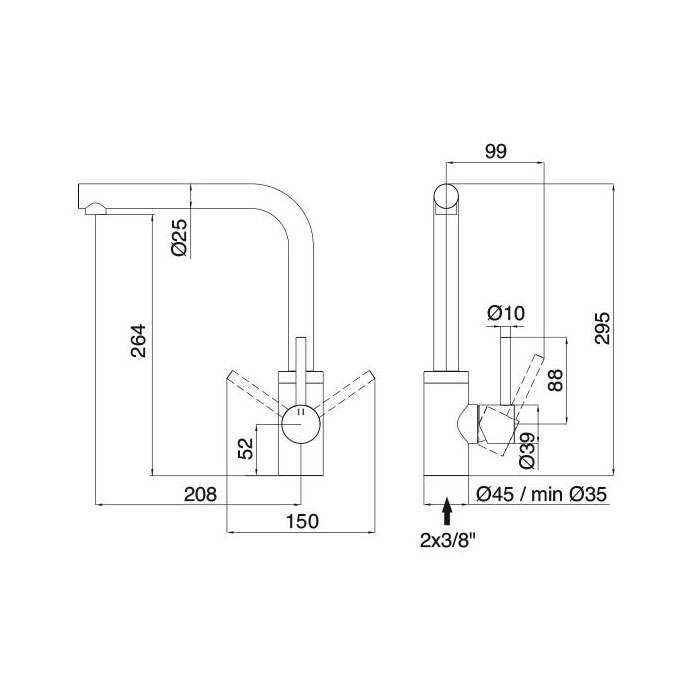 Treemme 40MM Смеситель для кухни, цвет: нержавеющая сталь 1334IS и другие сантехнические изделия бренда характеризует надежность, высокое качество и продолжительный срок службы. Изделие в стилистике лофт впечатляюще будет смотреться в различных цветовых решениях помещения.