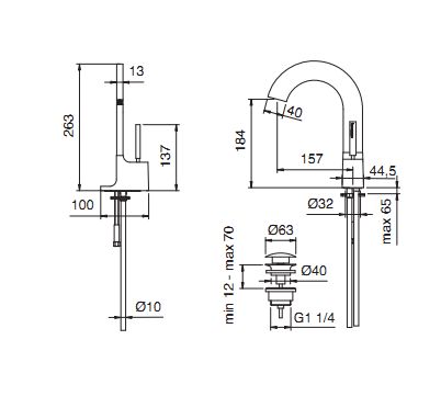 Treemme Cut Смеситель для раковины, цвет: черный/хром 3310NC и другие сантехнические изделия бренда характеризует надежность, высокое качество и продолжительный срок службы. Изделие в стилистике hi-tech впечатляюще будет смотреться в различных цветовых решениях помещения.