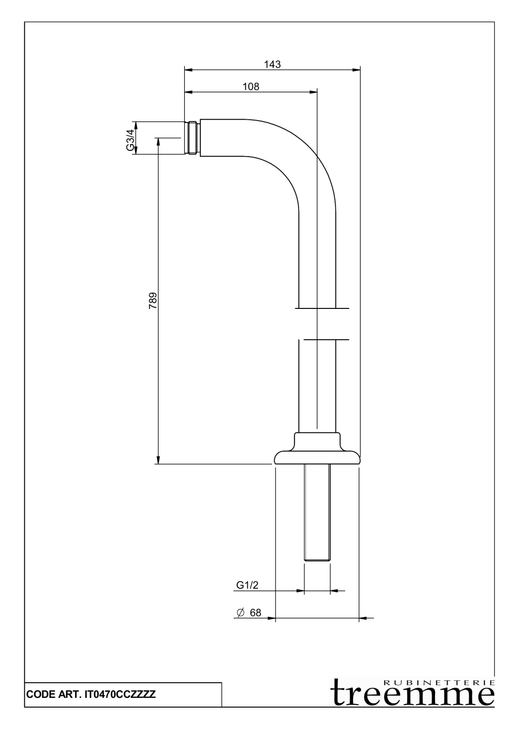 Treemme Romantica Труба из пола для смесителя ванны, цвет: chrome IT0470CCZZZZ и другие сантехнические изделия бренда характеризует надежность, высокое качество и продолжительный срок службы. Изделие в стилистике минимализм впечатляюще будет смотреться в различных цветовых решениях помещения.
