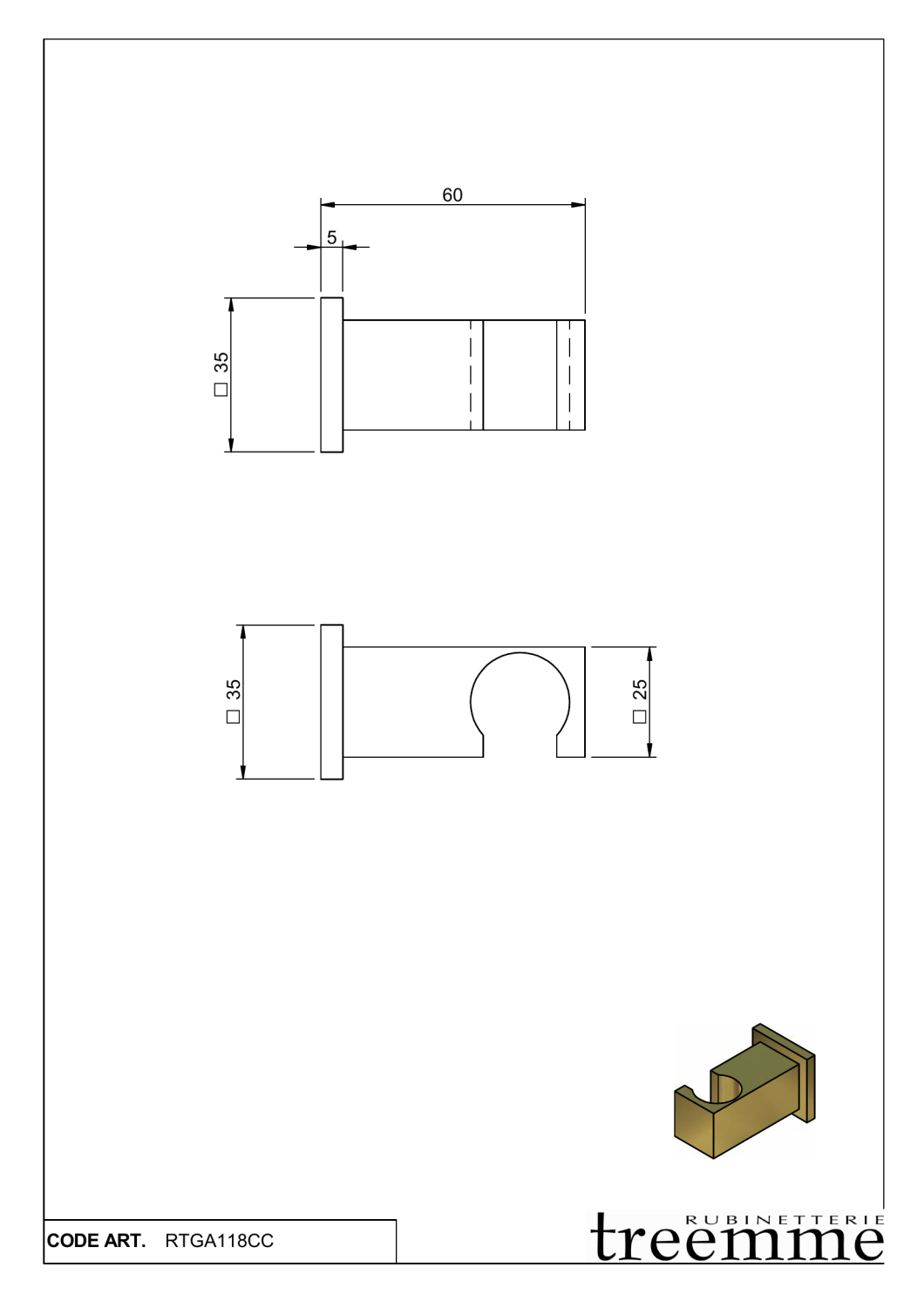 Treemme Shower Держатель для ручного душа, цвет: chrome ITRTGA118CC и другие сантехнические изделия бренда характеризует надежность, высокое качество и продолжительный срок службы. Изделие в стилистике минимализм впечатляюще будет смотреться в различных цветовых решениях помещения.