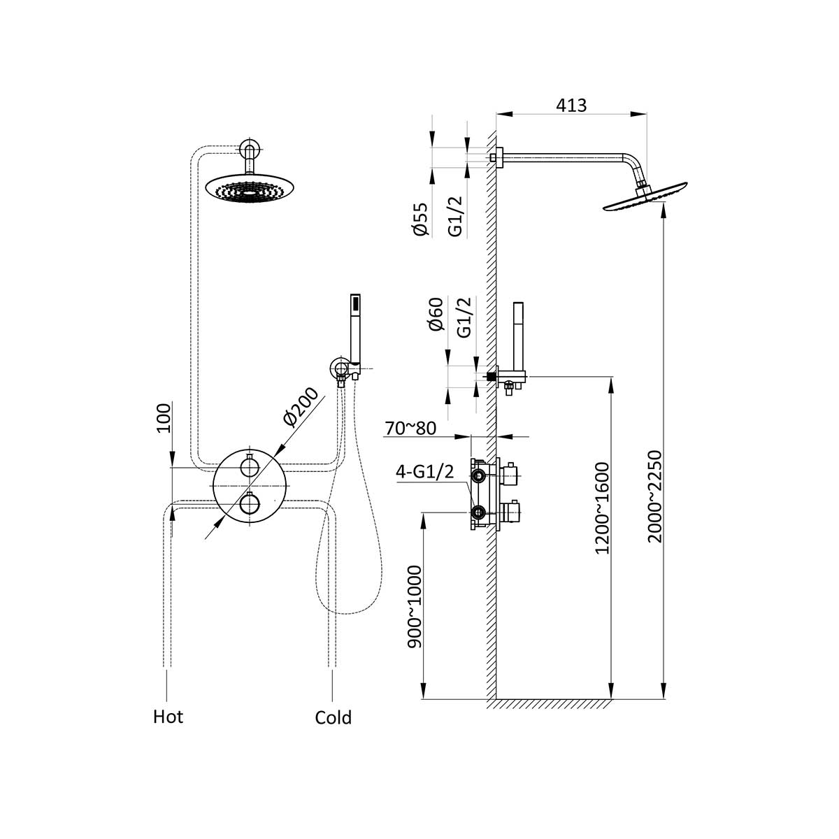 Состав комплектаверхний душ, ручной душ, смеситель со встраиваемой частью