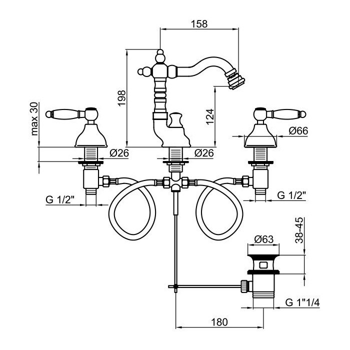 Webert Dorian Смеситель для биде, цвет: золото/белый DO710502010 и другие сантехнические изделия бренда характеризует надежность, высокое качество и продолжительный срок службы. Изделие в стилистике прованс впечатляюще будет смотреться в различных цветовых решениях помещения.