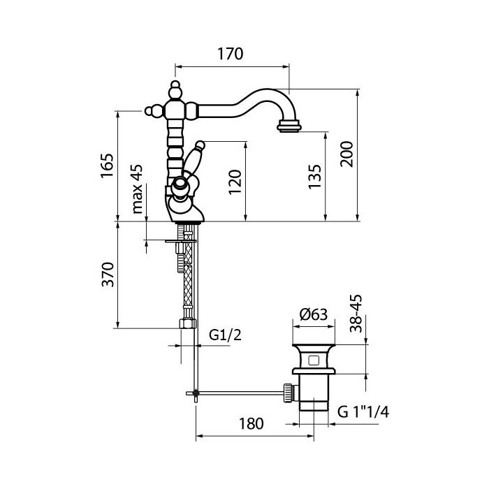 Webert Dorian Смеситель для раковины, цвет: бронза/белый DO700302065 и другие сантехнические изделия бренда характеризует надежность, высокое качество и продолжительный срок службы. Изделие в стилистике прованс впечатляюще будет смотреться в различных цветовых решениях помещения.