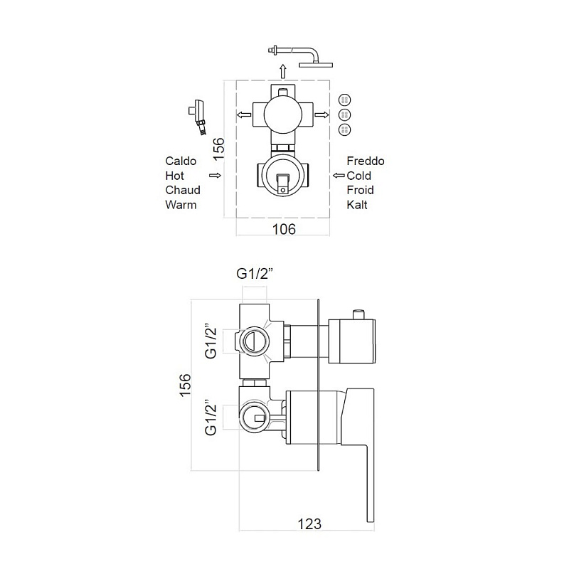 Webert Pegaso Встраиваемый смеситель для душа, цвет: белый матовый PE880601740 и другие сантехнические изделия бренда характеризует надежность, высокое качество и продолжительный срок службы. Изделие в стилистике hi-tech впечатляюще будет смотреться в различных цветовых решениях помещения.