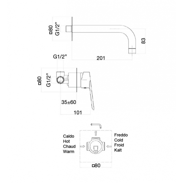 Webert Sax Evolution Смеситель для раковины, настенный, цвет: черный матовый SE830606560 и другие сантехнические изделия бренда характеризует надежность, высокое качество и продолжительный срок службы. Изделие в стилистике минимализм впечатляюще будет смотреться в различных цветовых решениях помещения.