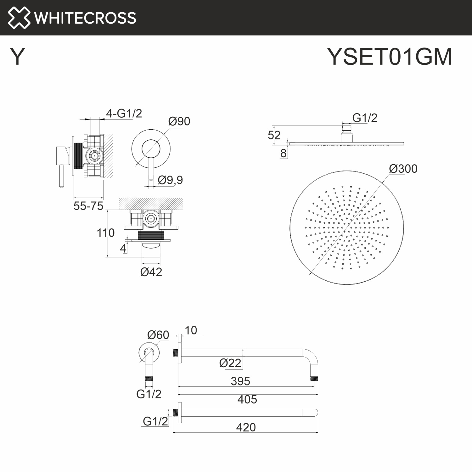 Whitecross Y Душевой комплект встраиваемый: верхний душ 30 см, кронштейн, цвет: оружейная сталь YSET01GM и другие сантехнические изделия бренда характеризует надежность, высокое качество и продолжительный срок службы. Изделие в стилистике неоклассика впечатляюще будет смотреться в различных цветовых решениях помещения.