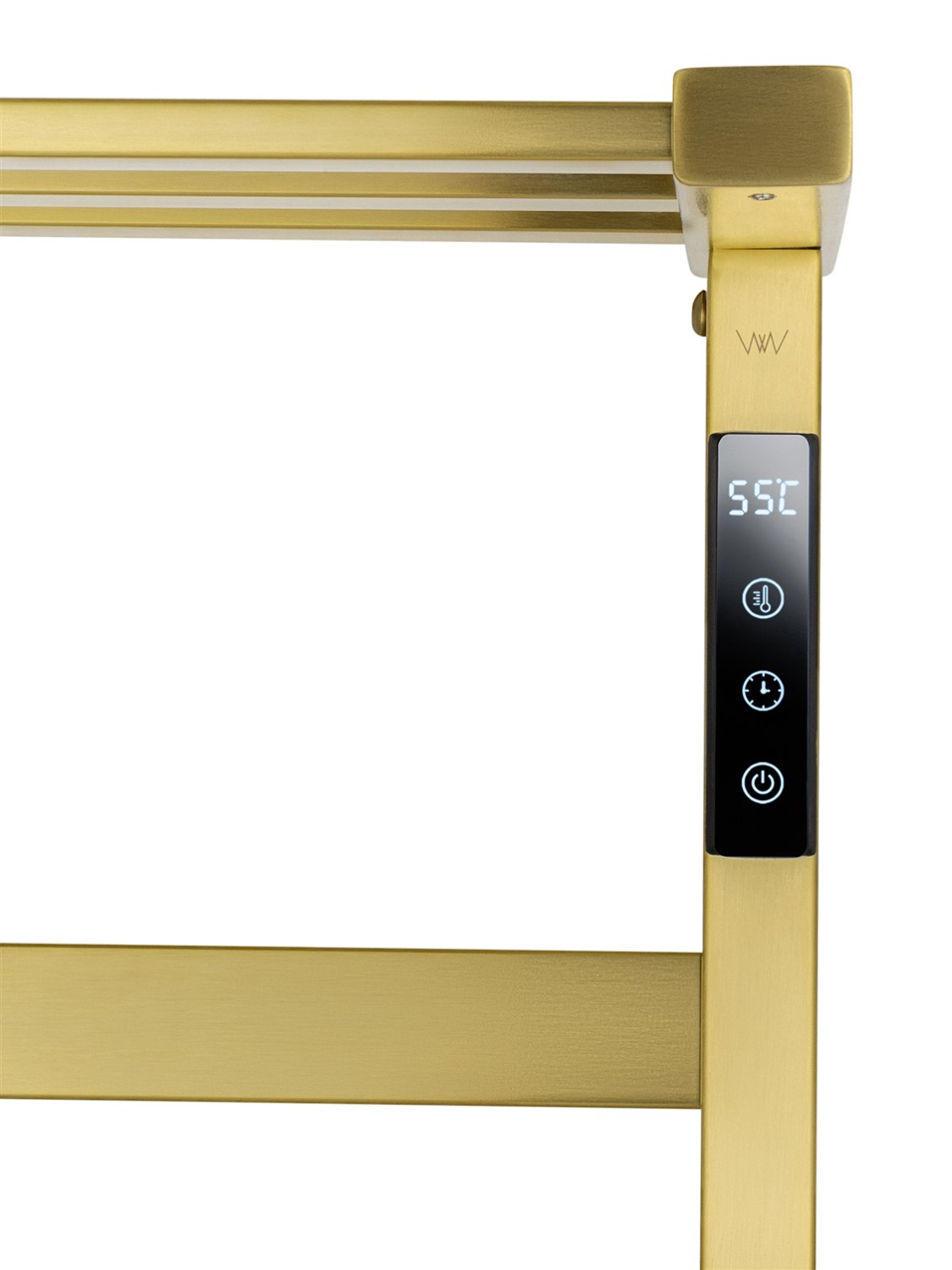Wonzon & Woghand Frankfurt Полотенцесушитель электрический 48х64h см, цвет: брашированное золото WW-A1026-BG и другие сантехнические изделия бренда характеризует надежность, высокое качество и продолжительный срок службы. Изделие в стилистике минимализм впечатляюще будет смотреться в различных цветовых решениях помещения.