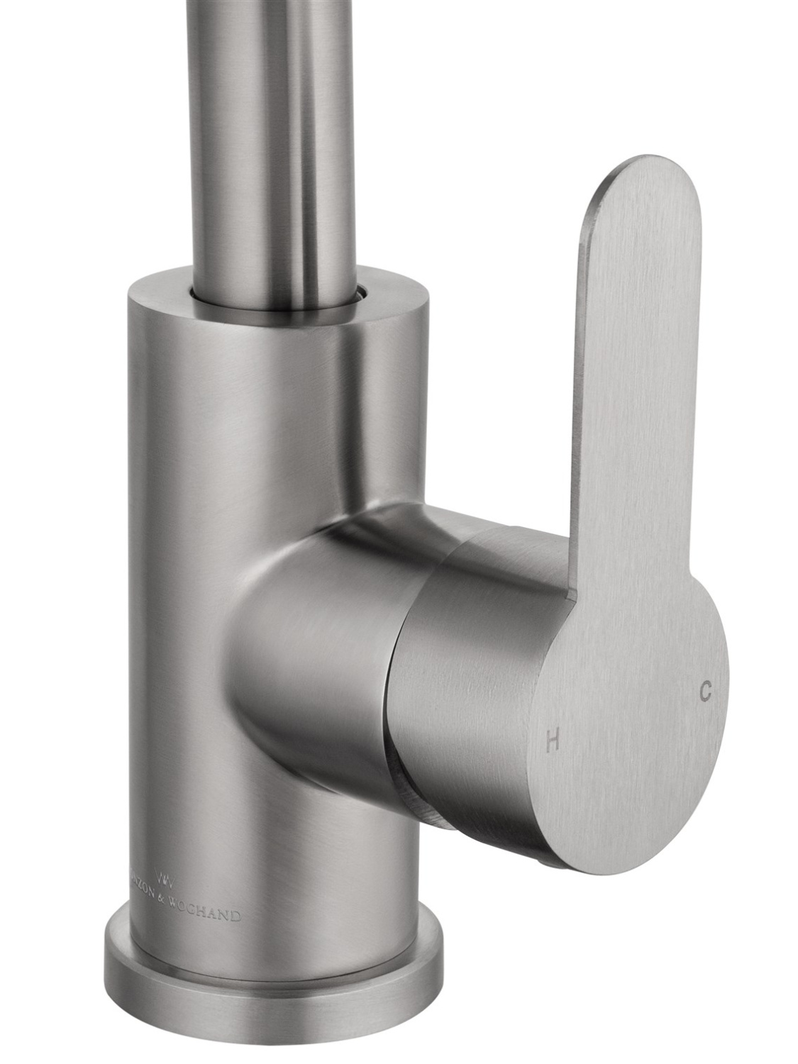 Wonzon & Woghand Смеситель для кухни, изливом 20,6 см, цвет: брашированный никель WW-AE4554-BS и другие сантехнические изделия бренда характеризует надежность, высокое качество и продолжительный срок службы. Изделие в стилистике лофт впечатляюще будет смотреться в различных цветовых решениях помещения.