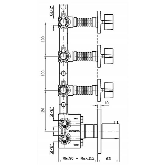 Zucchetti Внутренняя часть встраиваемого смесителя для душа R97822 и другие сантехнические изделия бренда характеризует надежность, высокое качество и продолжительный срок службы. Изделие в стилистике английская классика впечатляюще будет смотреться в различных цветовых решениях помещения.