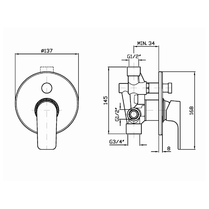 Zucchetti Wind Смеситель для ванны и душа встроенный, однорычажный, цвет: хром ZWN134 и другие сантехнические изделия бренда характеризует надежность, высокое качество и продолжительный срок службы. Изделие в стилистике минимализм впечатляюще будет смотреться в различных цветовых решениях помещения.